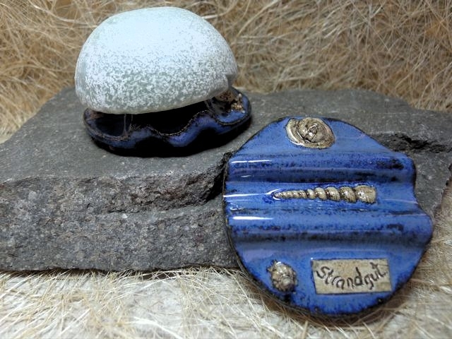 Die Seifenablagen sind handgefertigt, und jedes Stück ist ein Unikat. Das Foto zeigt ähnliche Seifenablagen. Muster und Form unterscheiden sich immer etwas. Der Preis bezieht sich auf eine Seifenablage ohne Seife.